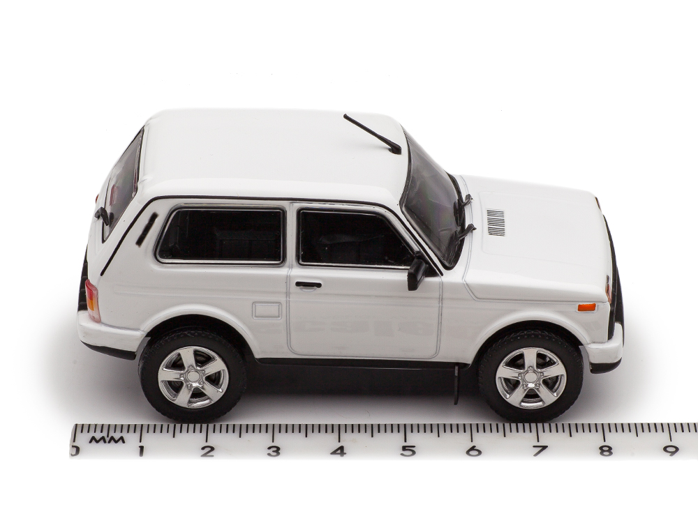 The metal model of the Lada Niva Urban is approximately 8.5 cm long.